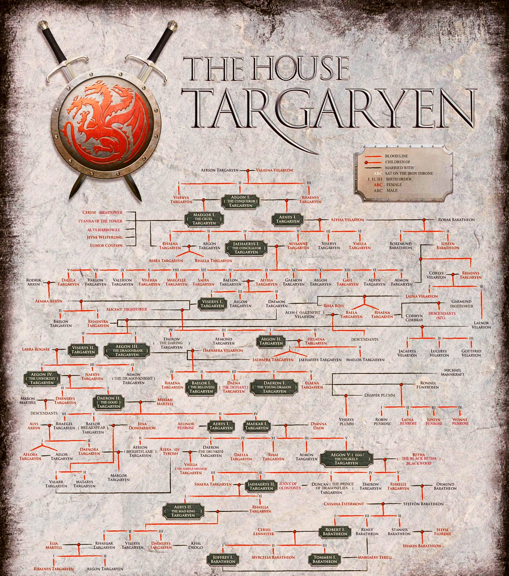 Pour comprendre la généalogie de la maison Targaryen, il faut savoir que pour garder le sang des Valyria pur, ils se sont mariés entre eux.